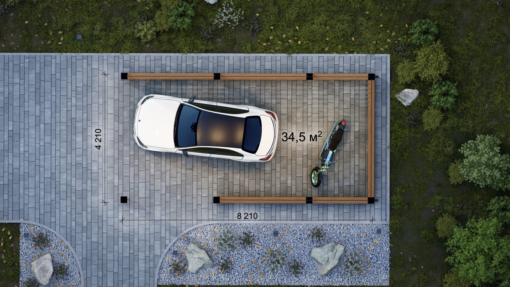 Любой навес можно адаптировать под ваши задачи — изменить размеры, форму, высоту или цвет, чтобы он идеально вписался в архитектуру участка.